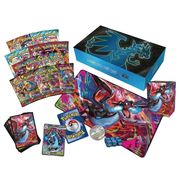 Ontketen de kracht van de Mega Evolutions met de Mega Evolutions Phantasmal Flames – Mega Charizard X EX Ultra-Premium Collection. Deze luxueuze set is speciaal ontworpen voor Pokémon TCG spelers, fanatieke verzamelaars en slimme investeerders die hun collectie naar een hoger niveau willen tillen.